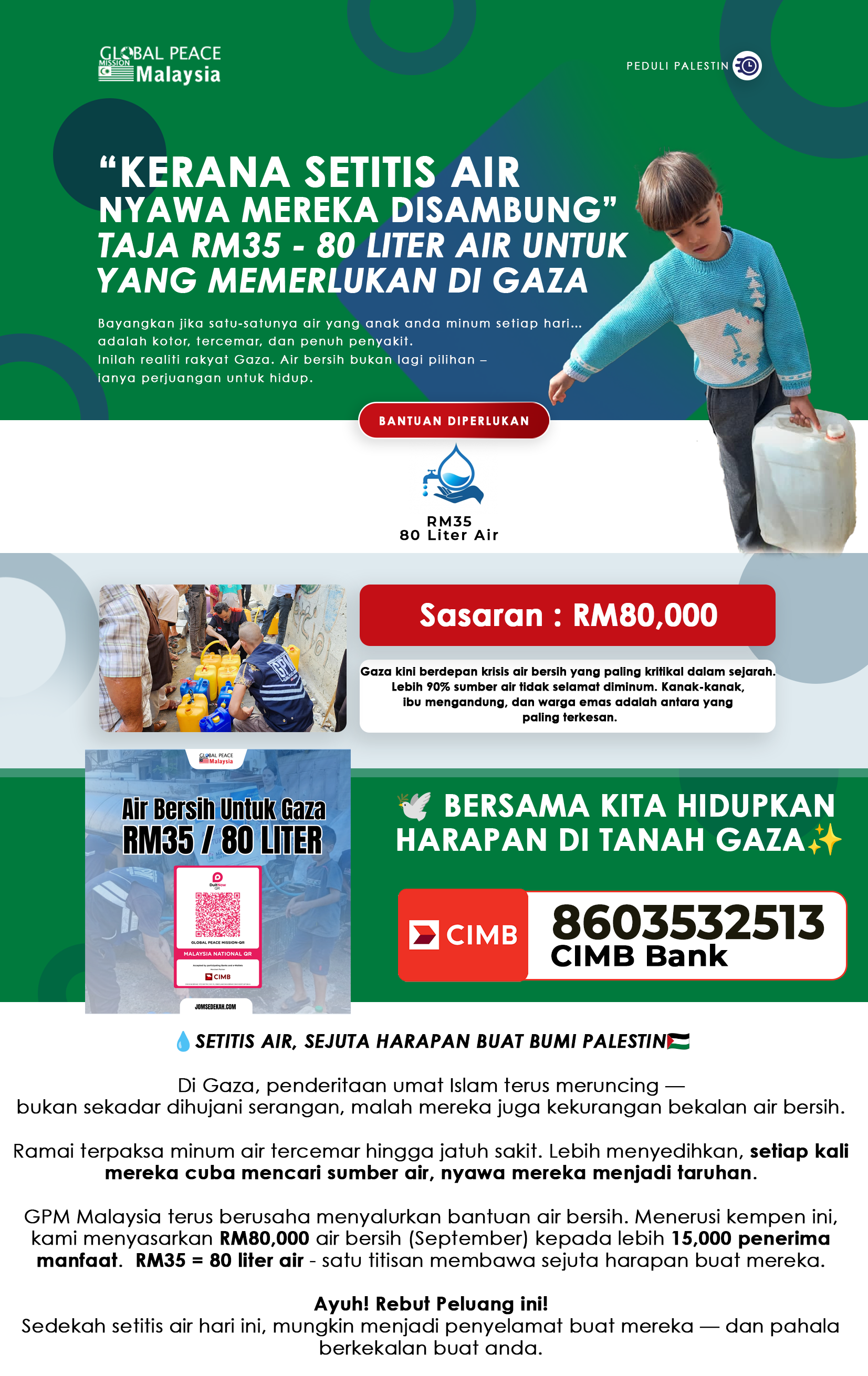 TAJAAN AIR BERSIH GAZA - Jom Sedekah - Global Peace Malaysia