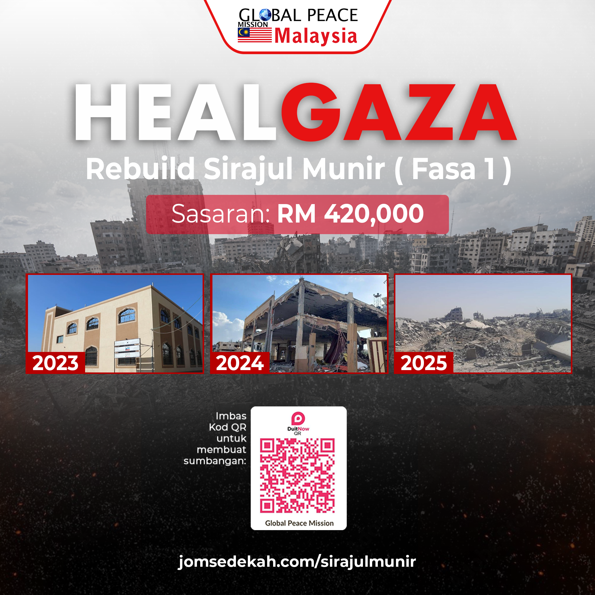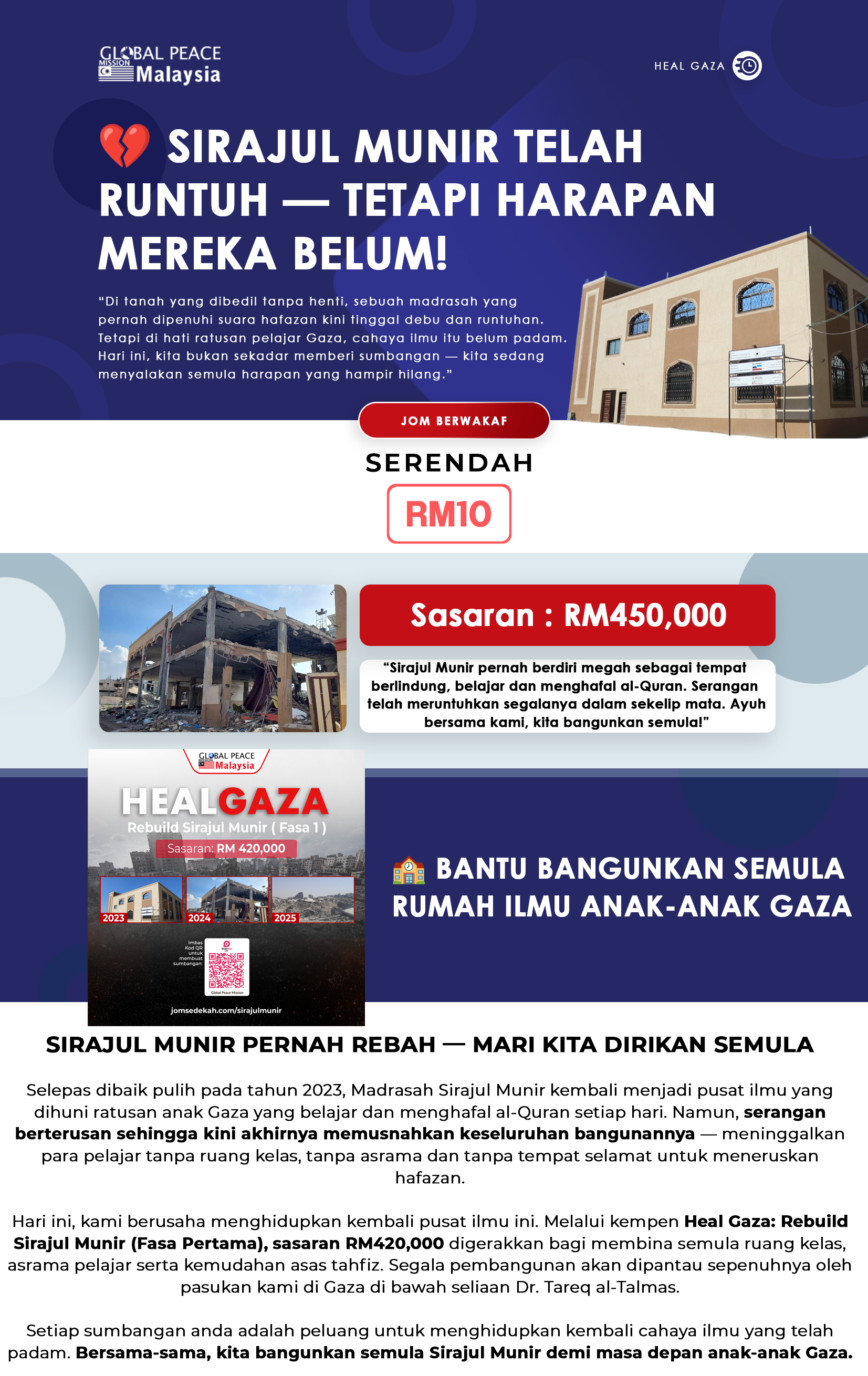 TABUNG HEAL GAZA : PEMBINAAN SEMULA TAHFIZ SIRAJUL MUNIR - Jom Sedekah - Global Peace Malaysia